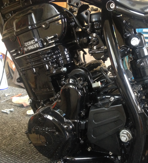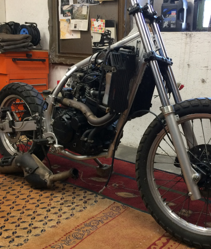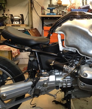 Ehemals ein Fahrschulfahrzeug und leider nicht nur ein Umfaller. Da Plastik noch nie mein Fall waren , alles mal runter und einen Alu Tank von einer 1100S drauf. Natuerlich sind auch noch einige andere Kleinigkeiten veraendert worden.